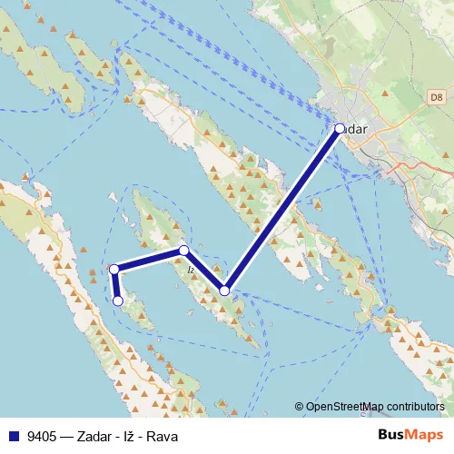 Click here to view the nearest 9405 - Zadar - Iž - Rava ferry stop.