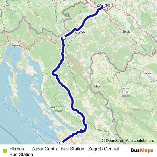 The first stop of the Flixbus bus route is Zagreb Central Bus Station and the last stop is Zadar Central Bus Station. Flixbus (Zadar Central Bus Station - Zagreb Central Bus Station) is operational during svakodnevno.