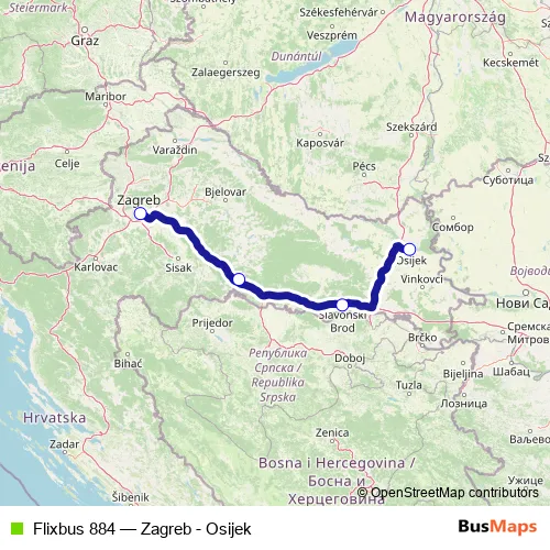 Click here to view the nearest Flixbus 884 - Zagreb - Osijek bus stop.