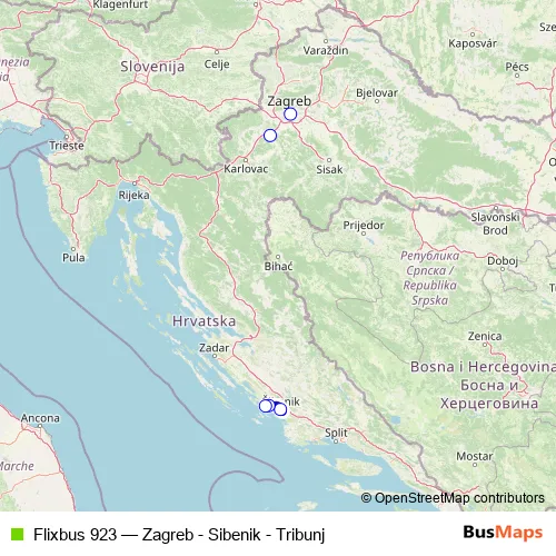 Click here to view the nearest Flixbus 923 - Zagreb - Sibenik - Tribunj bus stop.