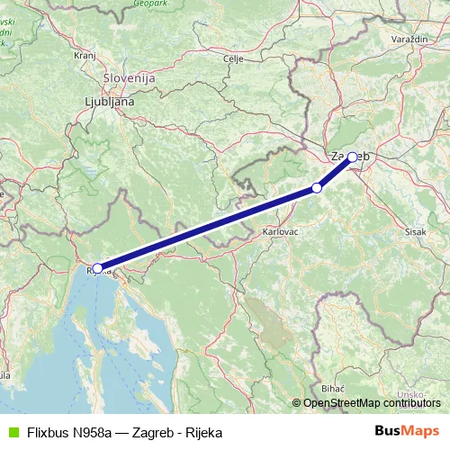 Click here to view the nearest Flixbus N958a - Zagreb - Rijeka bus stop.