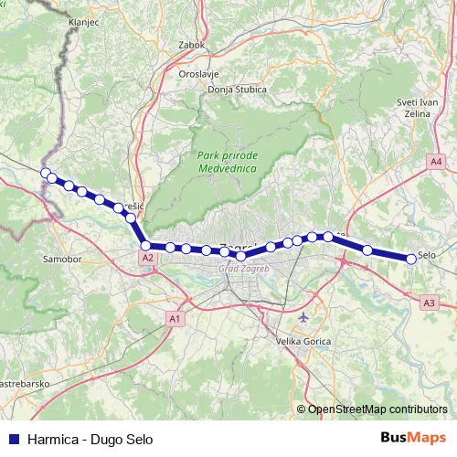 Additional information: Harmica - Dugo Selo has 20 stops and the total trip duration for this route is approximately 76 minutes.