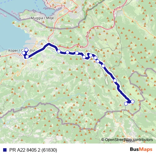 Kolodvorska cesta / Strada della Stazione - Vojkovo nabrežje / Riva Vojko - Ljubljanska cesta / Strada di Ljubljana - Dekani - Bezovica - Podpeč - Zazid - Rakitovec