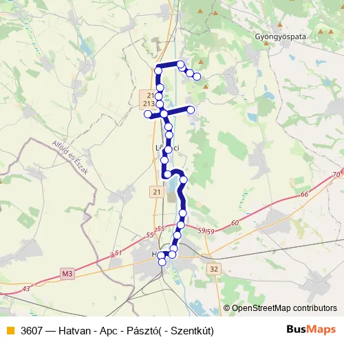 Click here to view the nearest 3607 - Hatvan - Apc - Pásztó( - Szentkút) bus stop.