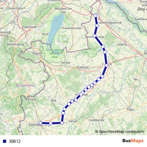 The first stop of the 39812 rail route is Hegyeshalom and the last stop is Szombathely. 39812 is operational during minden nap.