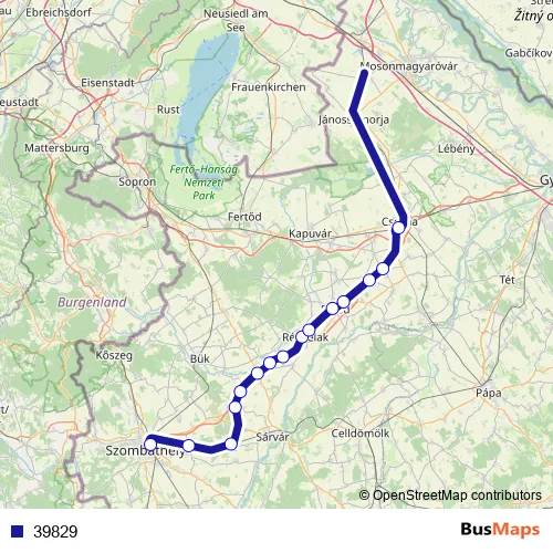 The first stop of the 39829 rail route is Szombathely and the last stop is Csorna. 39829 is operational during minden nap.
