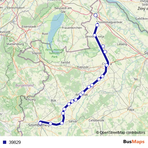 The first stop of the 39829 rail route is Szombathely and the last stop is Hegyeshalom. 39829 is operational during minden nap.