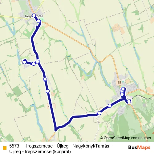 Bus 5573 - Iregszemcse - Újireg - Nagykónyi/Tamási - Újireg - Iregszemcse (körjárat): Full Schedule in Tamasi