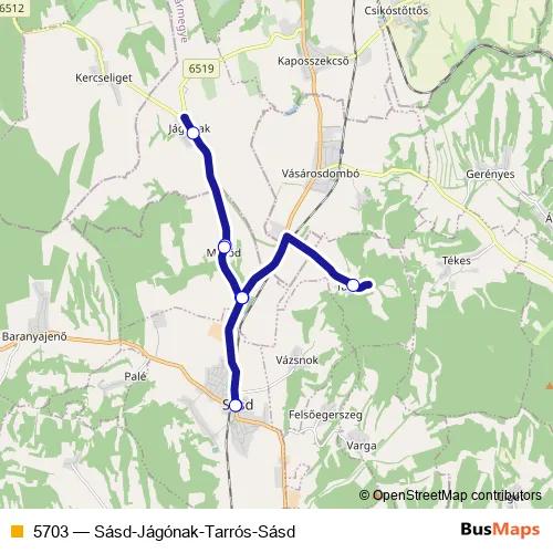 Bus 5703 - Sásd-Jágónak-Tarrós-Sásd Schedule in Sasd