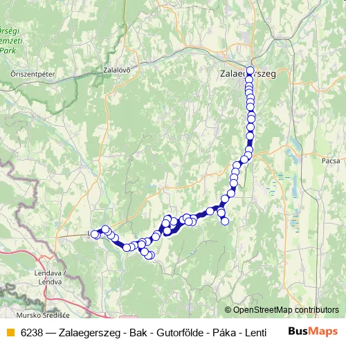 Click here to view the nearest 6238 - Zalaegerszeg - Bak - Gutorfölde - Páka - Lenti bus stop.