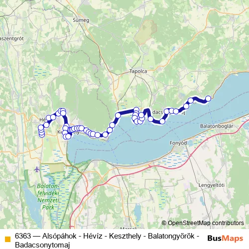 Click here to view the nearest 6363 - Alsópáhok - Hévíz - Keszthely - Balatongyörök - Badacsonytomaj bus stop.