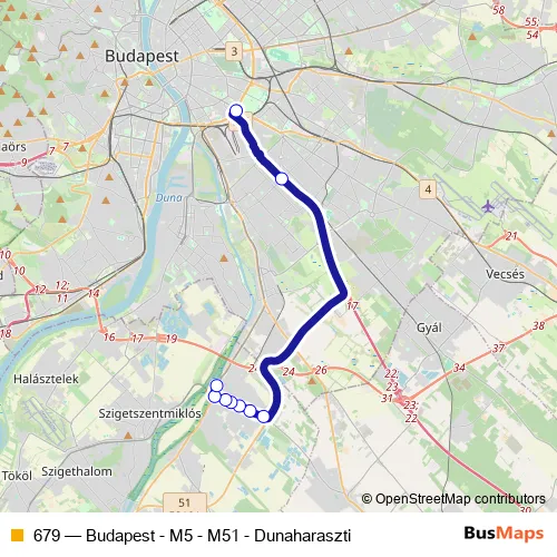 Click here to view the nearest 679 - Budapest - M5 - M51 - Dunaharaszti bus stop.