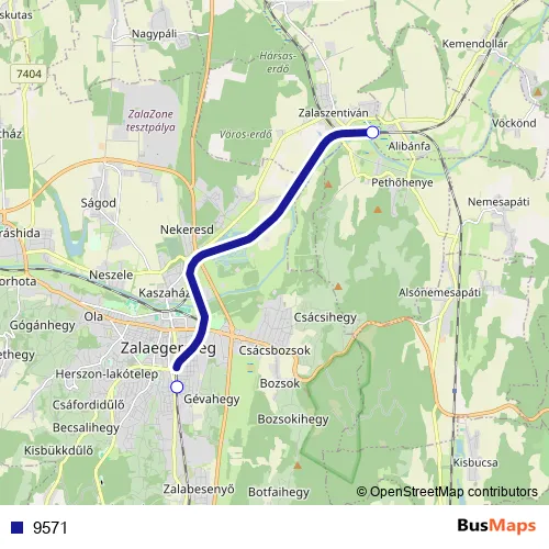 The first stop of the 9571 rail route is Zalaegerszeg and the last stop is Zalaszentiván. 9571 is operational during minden nap.