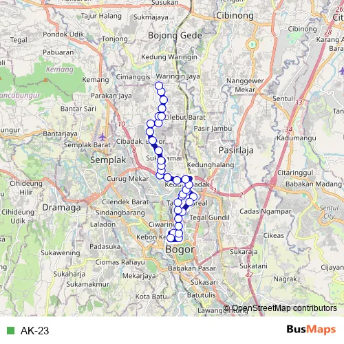 See why over 2 million users trust and consider busmaps.com as the best public transport website. busmaps gives you Cibinong Buses suggested routes, real-time bus tracker, line route maps in Cibinong, and helps to find the closest AK-23 bus stops near you. No internet available? Download an offline PDF map and bus schedule for the AK-23 bus to take on your trip.