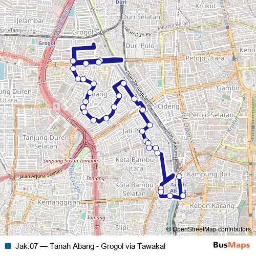 Bus Jak.07 - Tanah Abang - Grogol via Tawakal in Jakarta: Stops & Timetable