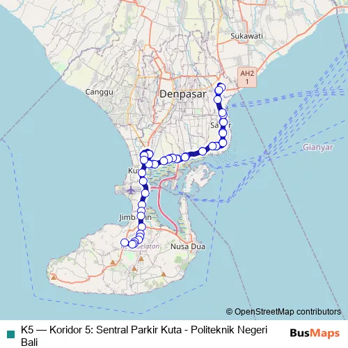 See why over 2 million users trust and consider busmaps.com as the best public transport website. busmaps gives you Denpasar Buses suggested routes, real-time bus tracker, line route maps in Denpasar, and helps to find the closest K5 bus stops near you. No internet available? Download an offline PDF map and bus schedule for the K5 bus to take on your trip.