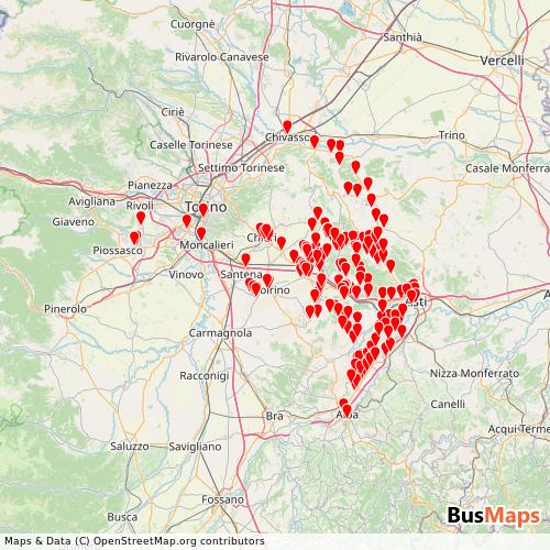 Autolinee Giachino S.r.l. operates in the following cities: Asti, Revigliasco d'Asti, Villanova d'Asti, Chieri, Magliano Alfieri, Montechiaro d'Asti, Valfenera.