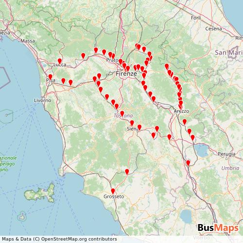 Autolinee Toscane - Servizi Sostitutivi Ferro operates in the following cities: Arezzo, Florence.