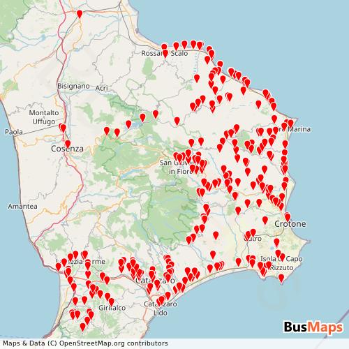 Romano Autolinee Regionali s.p.a. operates in the following cities: Catanzaro, Crotone, Cerenzia, Rocca di Neto, Cariati, Cosenza, Isola di Capo Rizzuto, Strongoli, Cotronei, Lamezia Terme, Melissa, San Giovanni in Fiore, Belvedere Spinello, Bocchigliero, Campana, Casabona, Cutro, Santa Severina, Scandale, Terravecchia, Botricello, Calopezzati, Castelsilano, Ciro Marina, Maida, Mesoraca, Pietrapaola, Sambiase, San Leonardo di Cutro, San Mauro Marchesato, Savelli, Tiriolo, Umbriatico, Verzino.