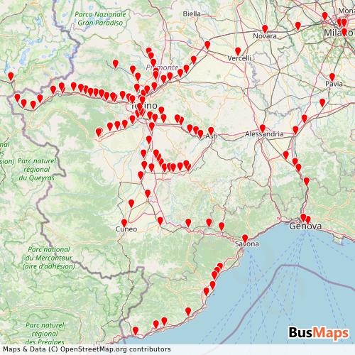 Trenitalia operates in the following cities: Turin, Bussoleno, Bardonecchia, Alba, Germagnano, Moncalieri, Genoa, Milan, Sommariva del Bosco.