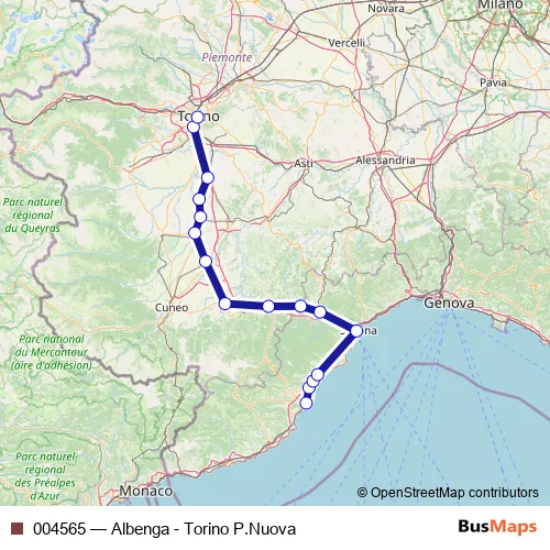 Click here to view the nearest 004565 - Albenga - Torino P.Nuova rail stop.