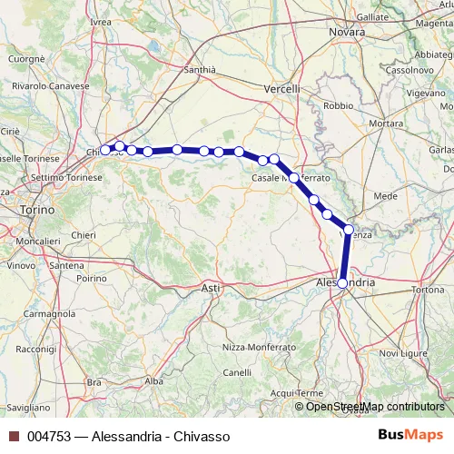 Click here to view the nearest 004753 - Alessandria - Chivasso rail stop.