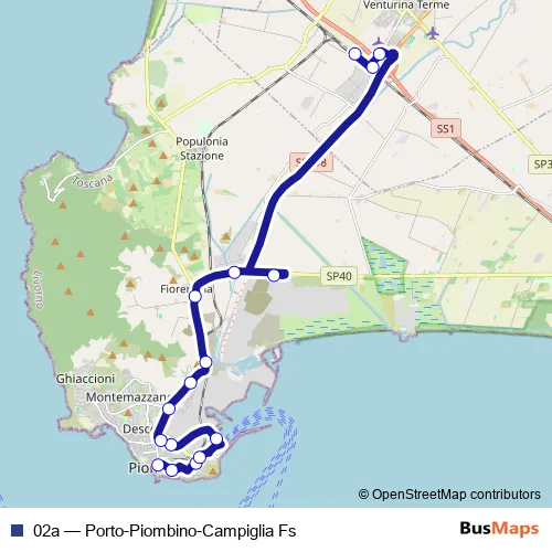 See why over 2 million users trust and consider busmaps.com as the best public transport website. busmaps gives you Piombino Buses suggested routes, real-time bus tracker, line route maps in Piombino, and helps to find the closest 02a bus stops near you. No internet available? Download an offline PDF map and bus schedule for the 02a bus to take on your trip.