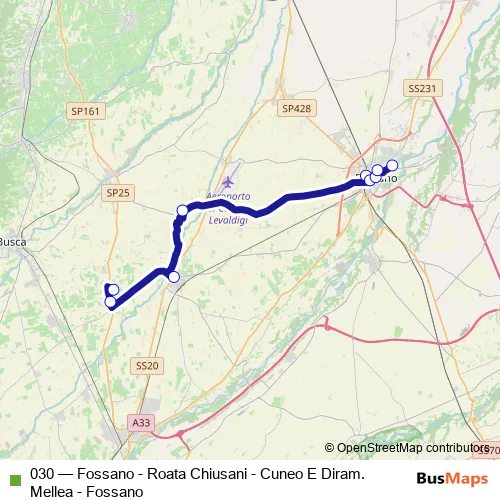 Bus 030 - Fossano - Roata Chiusani - Cuneo E Diram. Mellea - Fossano: Full Schedule in Fossano