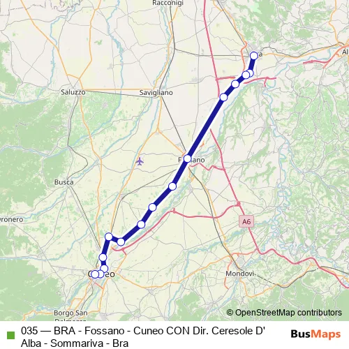 Bus 035 - BRA - Fossano - Cuneo CON Dir. Ceresole D'Alba - Sommariva - Bra: Full Schedule in Cuneo
