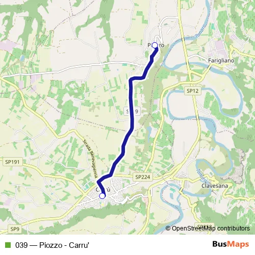 Bus 039 - Piozzo - Carru' in Carru: Stops & Timetable
