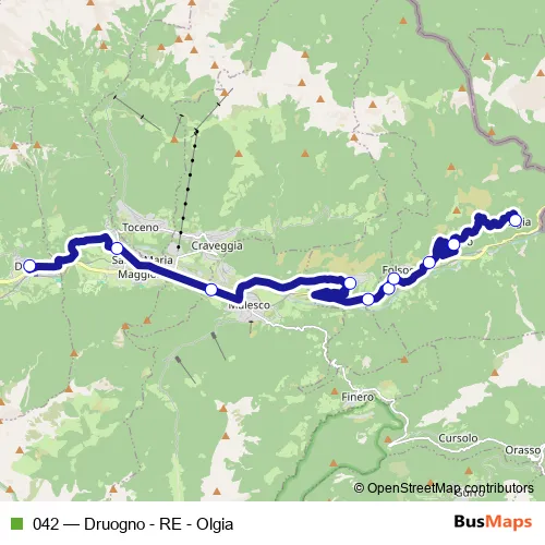 The first stop of the 042 bus route is Olgia and the last stop is Druogno - Municipio. 042 (Druogno - RE - Olgia) is operational during nei giorni feriali.