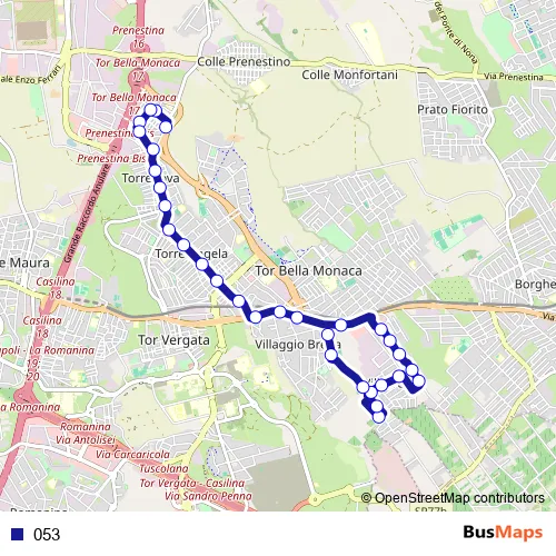 See why over 2 million users trust and consider busmaps.com as the best public transport website. busmaps gives you Rome Buses suggested routes, real-time bus tracker, line route maps in Rome, and helps to find the closest 053 bus stops near you. No internet available? Download an offline PDF map and bus schedule for the 053 bus to take on your trip.