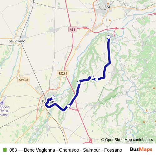 Bus 083 - Bene Vagienna - Cherasco - Salmour - Fossano in Fossano: Stops & Timetable