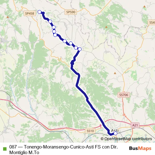 Click here to view the nearest 087 - Tonengo-Moransengo-Cunico-Asti FS con Dir. Montiglio M.To bus stop.