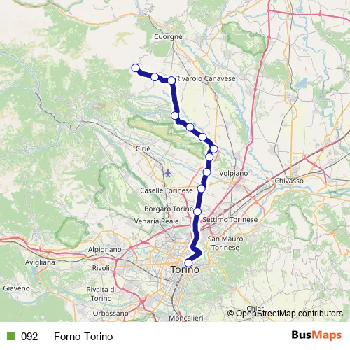 See why over 2 million users trust and consider busmaps.com as the best public transport website. busmaps gives you San Francesco al Campo Buses suggested routes, real-time bus tracker, line route maps in San Francesco al Campo, and helps to find the closest 092 bus stops near you. No internet available? Download an offline PDF map and bus schedule for the 092 bus to take on your trip.