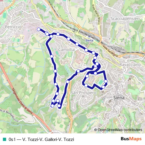 Bus 0s1 - V. Tozzi-V. Gallori-V. Tozzi: Full Schedule in Siena