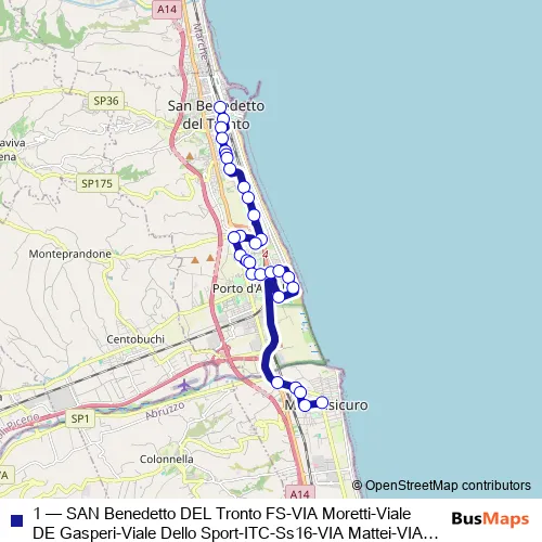 1 (SAN Benedetto DEL Tronto FS-VIA Moretti-Viale DE Gasperi-Viale Dello Sport-ITC-Ss16-VIA Mattei-VIA Mare-Sentina-Sopraelevata-Martinsicuro) Bus in San Benedetto del Tronto