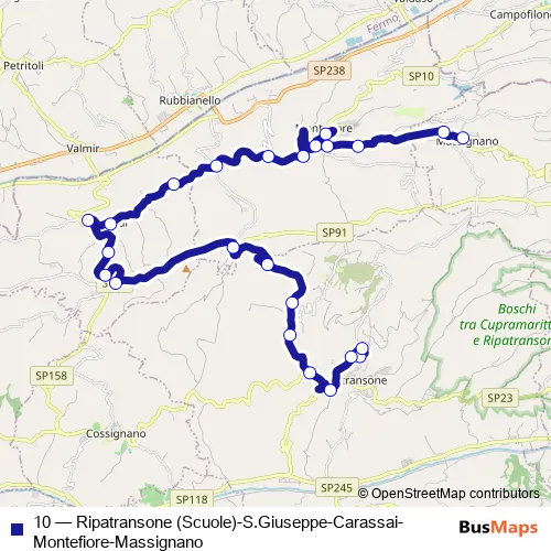 10 (Ripatransone (Scuole)-S.Giuseppe-Carassai-Montefiore-Massignano) Bus in Ripatransone