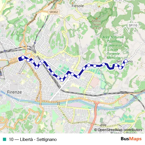 The first stop of the 10 bus route is Liberta' and the last stop is Settignano. 10 (Libertà - Settignano) is operational during tutti i giorni.
