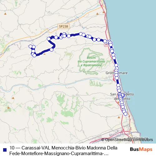 Start Spa 10 Carassai-VAL Menocchia-Bivio Madonna Della Fede-Montefiore-Massignano-Cupramarittima-Grottammare-Ss16-Piazza Nardone-SAN Benedetto DEL Tronto FS-VIA Roma-Ss16-VIA Mamiani Bus