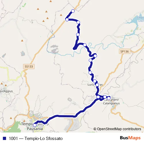 Bus 1001 - Tempio-Lo Sfossato in Luras: Stops & Timetable