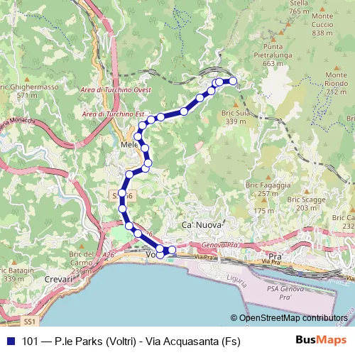 Acquasanta Fs. 101 (P.le Parks (Voltri) - Via Acquasanta (Fs)) is operational during tutti i giorni.