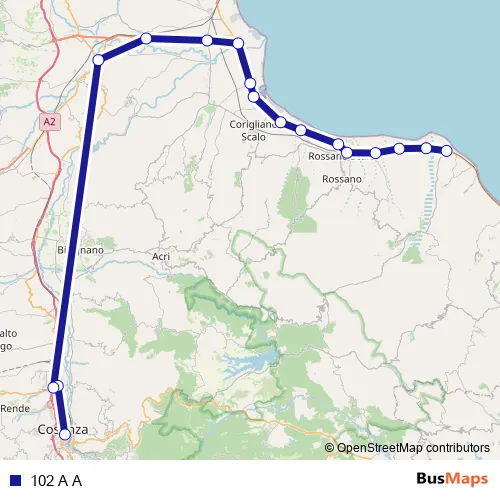 See why over 2 million users trust and consider busmaps.com as the best public transport website. busmaps gives you Rossano Buses suggested routes, real-time bus tracker, line route maps in Rossano, and helps to find the closest 102 A A bus stops near you. No internet available? Download an offline PDF map and bus schedule for the 102 A A bus to take on your trip.