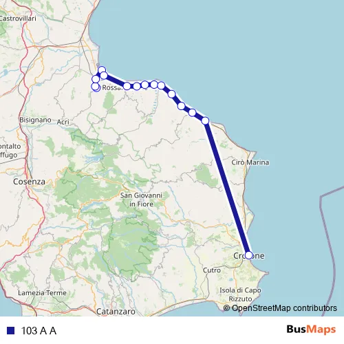 See why over 2 million users trust and consider busmaps.com as the best public transport website. busmaps gives you Rossano Buses suggested routes, real-time bus tracker, line route maps in Rossano, and helps to find the closest 103 A A bus stops near you. No internet available? Download an offline PDF map and bus schedule for the 103 A A bus to take on your trip.