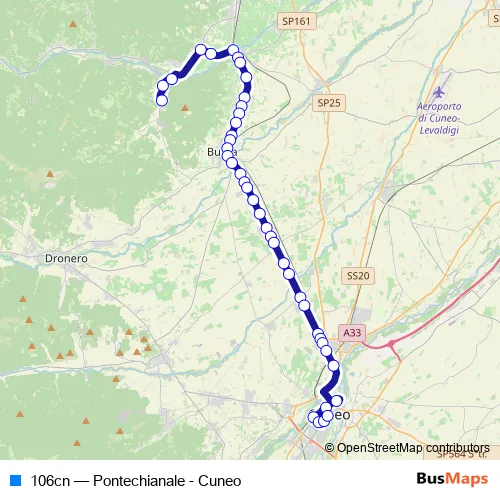 See why over 2 million users trust and consider busmaps.com as the best public transport website. busmaps gives you Cuneo Buses suggested routes, real-time bus tracker, line route maps in Cuneo, and helps to find the closest 106cn bus stops near you. No internet available? Download an offline PDF map and bus schedule for the 106cn bus to take on your trip.