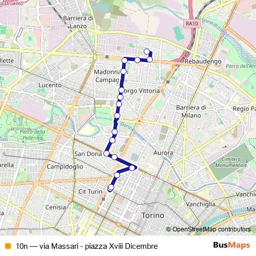 GTT Servizio Urbano 10n via Massari - piazza Xviii Dicembre Bus