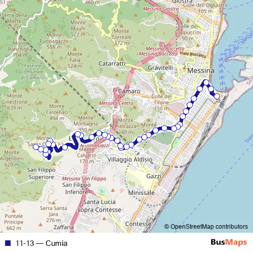 See why over 2 million users trust and consider busmaps.com as the best public transport website. busmaps gives you Messina Buses suggested routes, real-time bus tracker, line route maps in Messina, and helps to find the closest 11-13 bus stops near you. No internet available? Download an offline PDF map and bus schedule for the 11-13 bus to take on your trip.