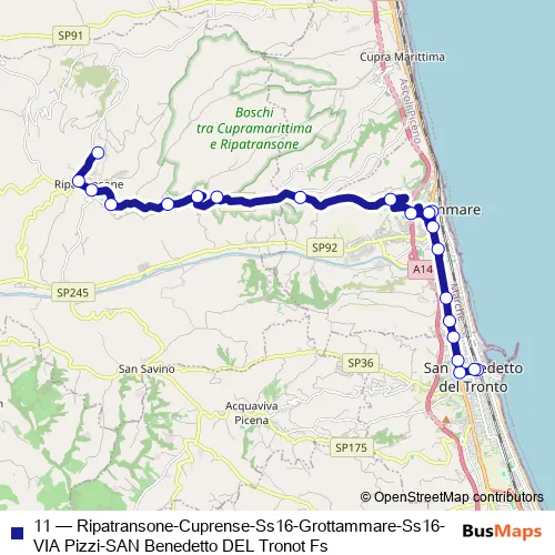 Bus 11 - Ripatransone-Cuprense-Ss16-Grottammare-Ss16-VIA Pizzi-SAN Benedetto DEL Tronot Fs in Grottammare: Stops & Timetable