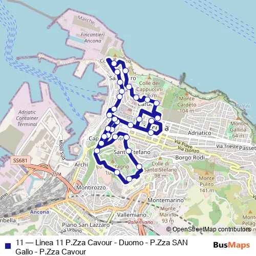 Bus 11 - Linea 11 P.Zza Cavour - Duomo - P.Zza SAN Gallo - P.Zza Cavour: Full Schedule in Ancona