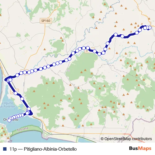Orbetello Porto. 11p (Pitigliano-Albinia-Orbetello) is operational during tutti i giorni.